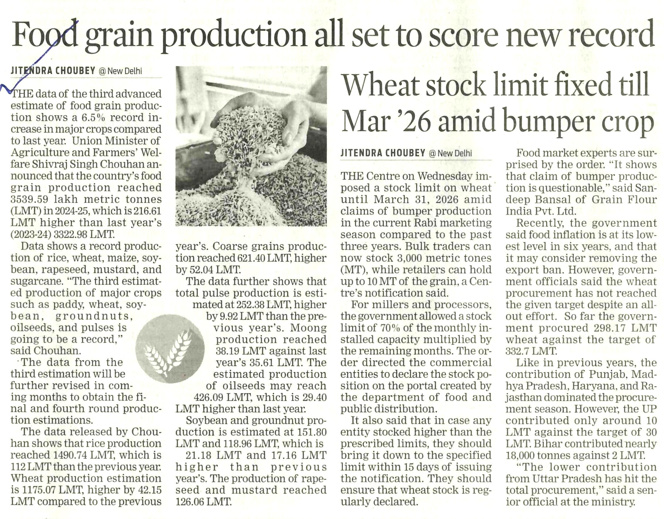 Food grain production all set to score new record (Source: The New Indian Express 29.05.2025)