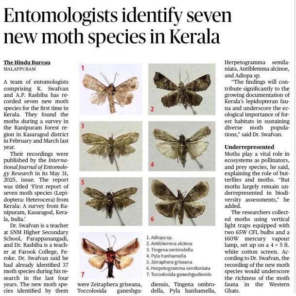 Entomologists identify seven new moth species in Kerala (Source: The Hindu 04.06.2025)