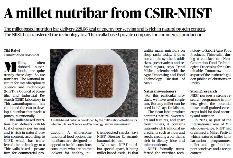 A millet nutribar from CSIR-NIIST (Source: The Hindu 15.06.2025)