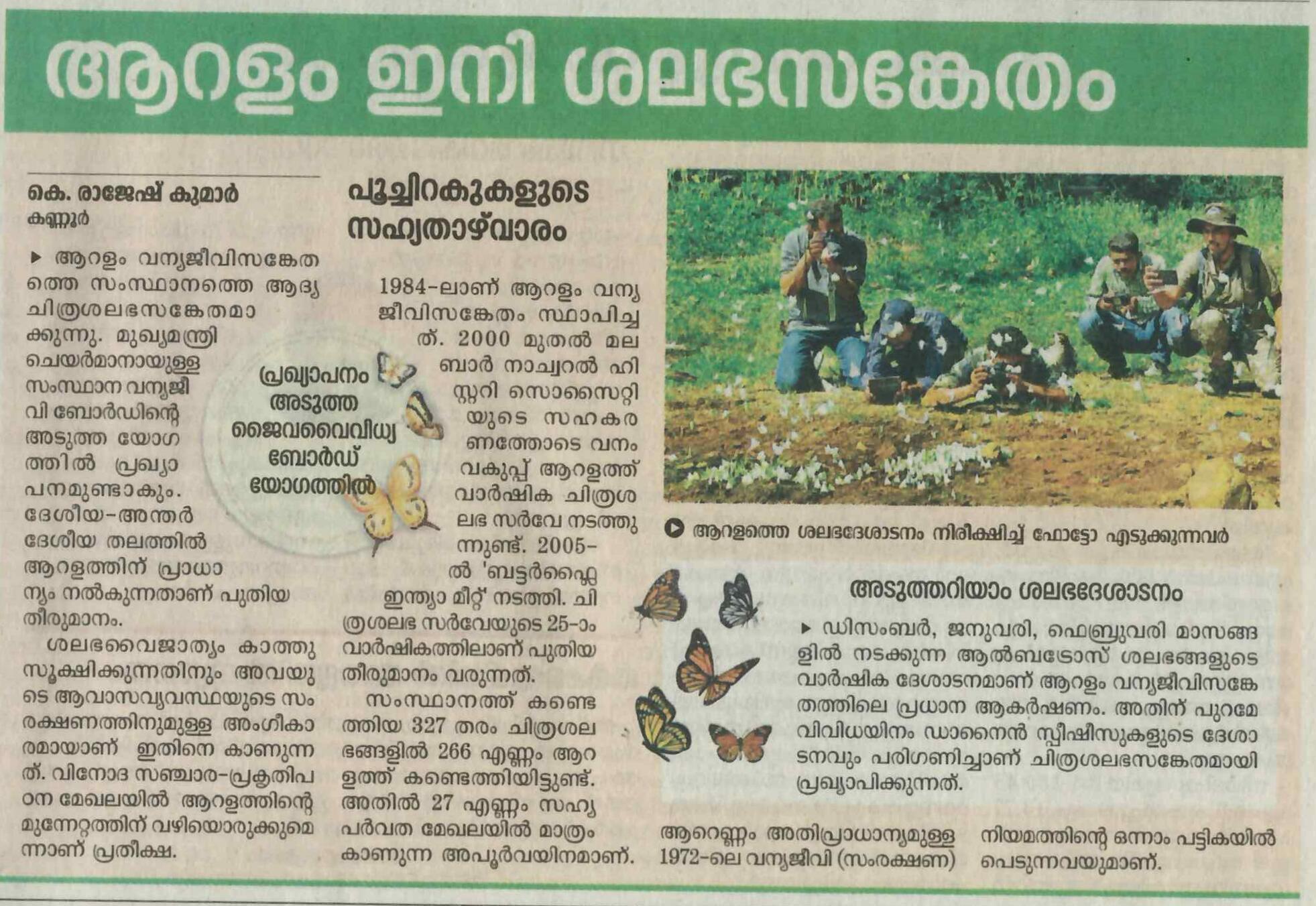 ആറളം ഇനി ശലഭസങ്കേതം (Source: Mathrubhumi 17.06.2025)