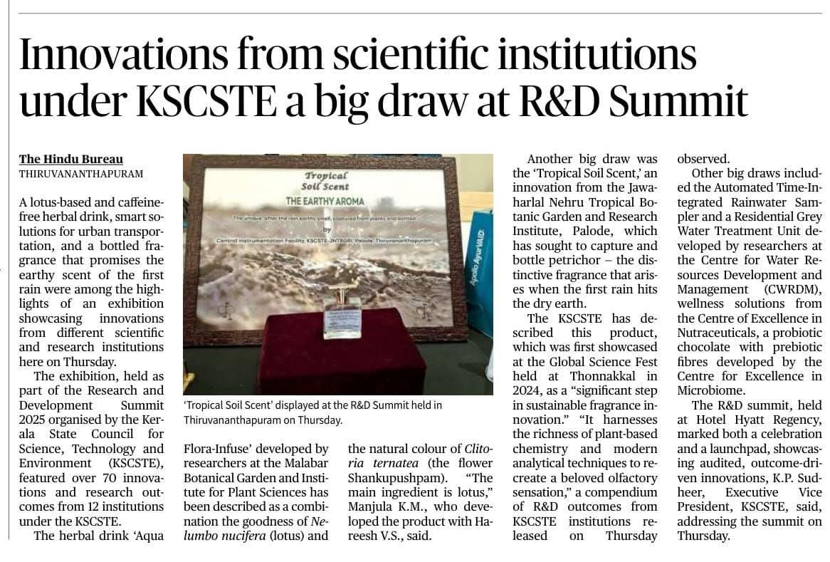 Innovations from scientific institutions under KSCSTE a big draw at R&D Summit (Source: The Hindu 08.08.2025)