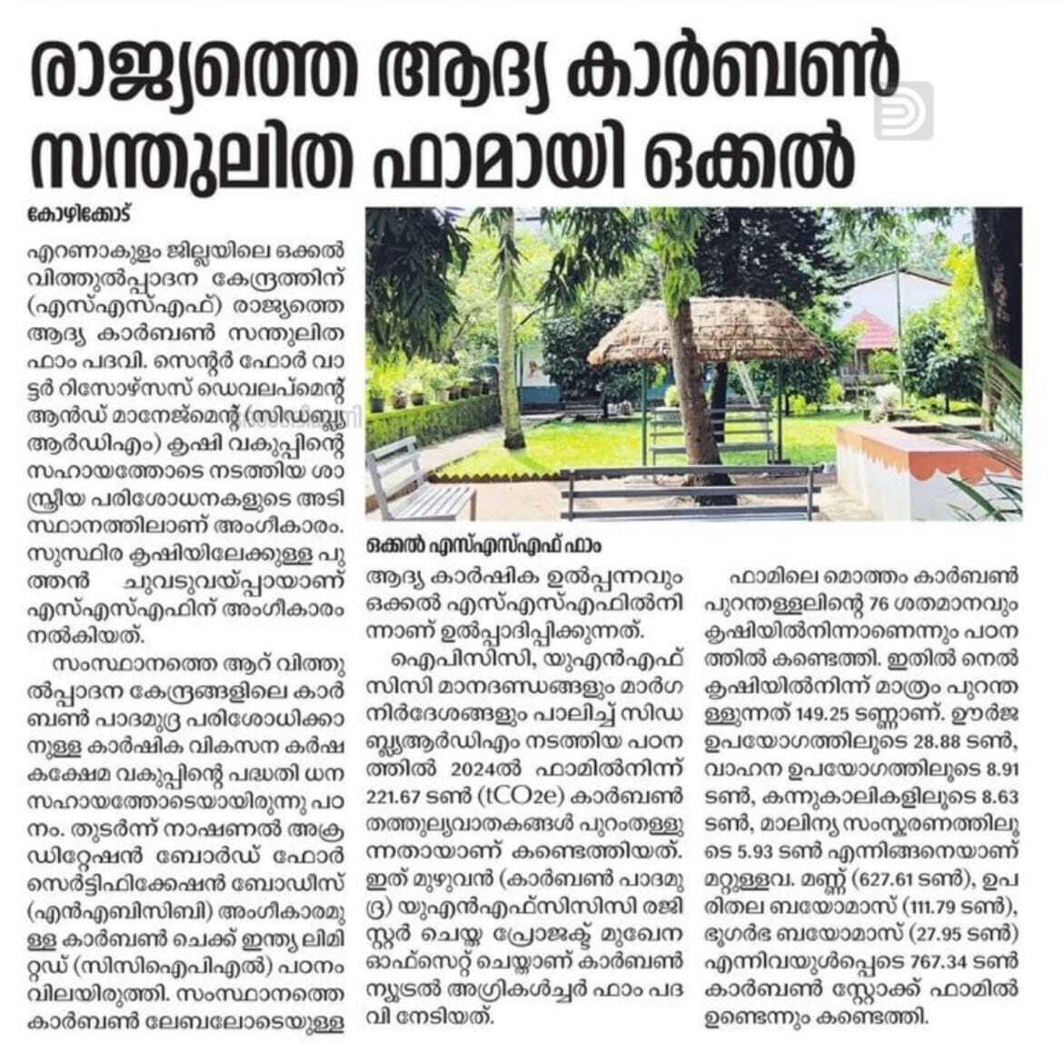 രാജ്യത്തെ ആദ്യ കാർബൺ സന്തുലിത ഫാമായി ഒക്കൽ (Source: Deshabhimani 17.08.2025)